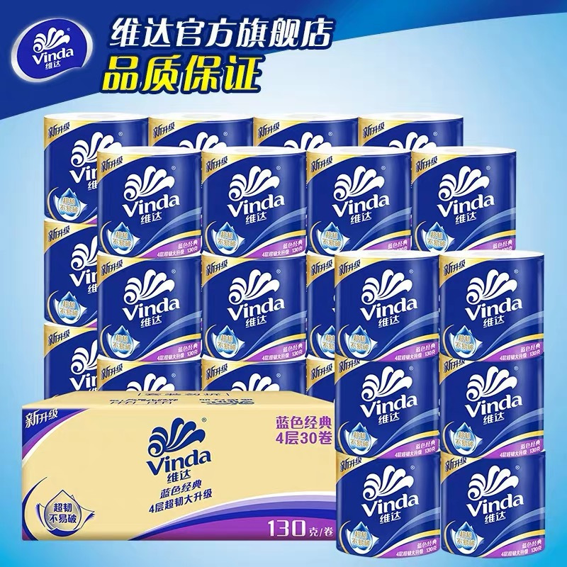 维达卷纸 蓝色经典4层130g30卷 整箱装卫生纸家用纸巾厕纸手纸有芯卷筒纸厕所纸批发加厚厚实单提
